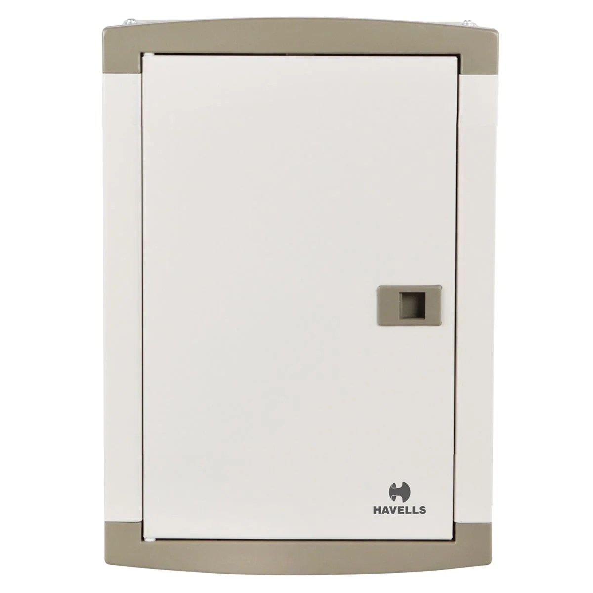 TPN Single Door QVE Series DB Suitable for MCB / RCCB / Isolator as incomer 8 Way Regal Grey Havells | DHDQTHCSRW08